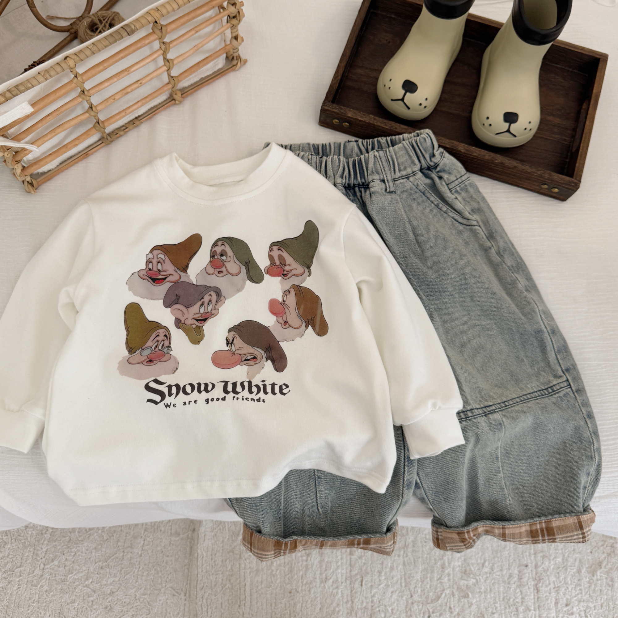 齊齊熊男童t恤長袖 春秋款 寶寶假兩件純棉兒童女童 7A抗菌小魔怪