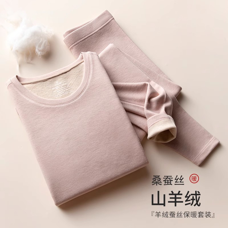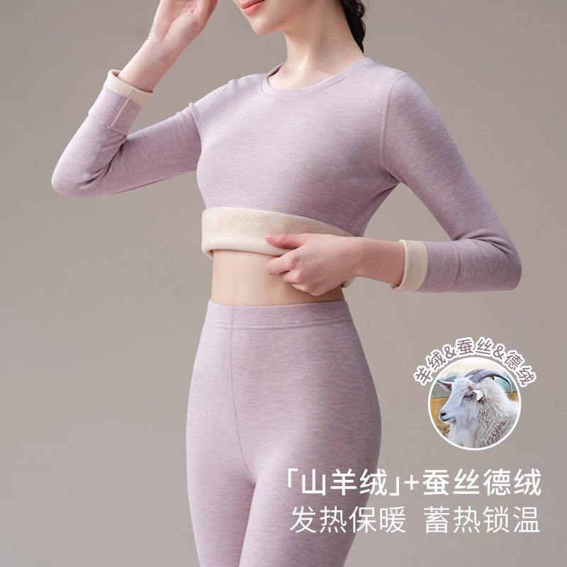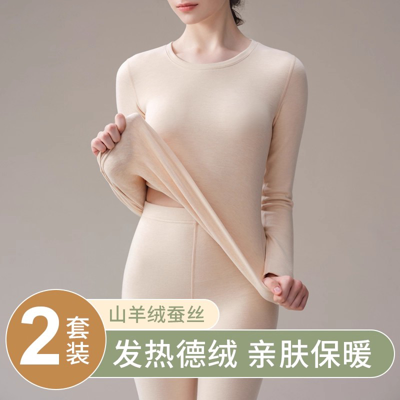 羊絨蠶絲保暖內衣套裝 德絨發熱內搭加絨加厚秋衣秋褲 套裝 女秋冬季由