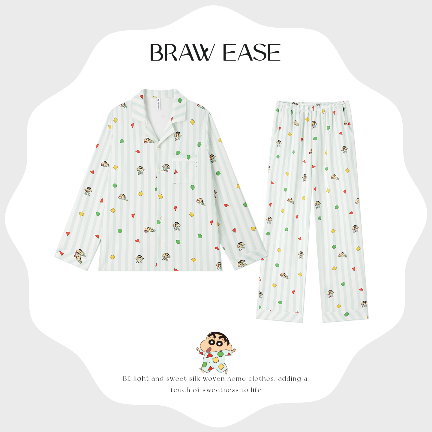 女款 蠟筆小新聯名純棉睡衣男士 秋季 長袖 秋天女秋冬 情侶家居服套裝由