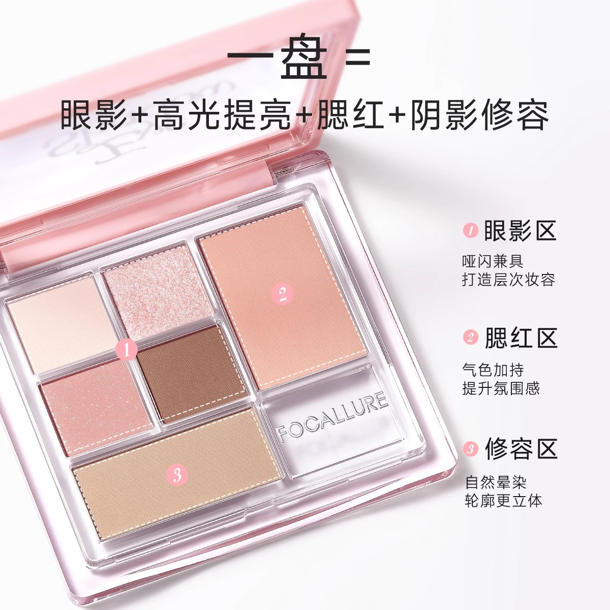 菲鹿兒六色眼影盤啞光珠光細閃日常立體修容陰影腮紅一體盤正 新品由