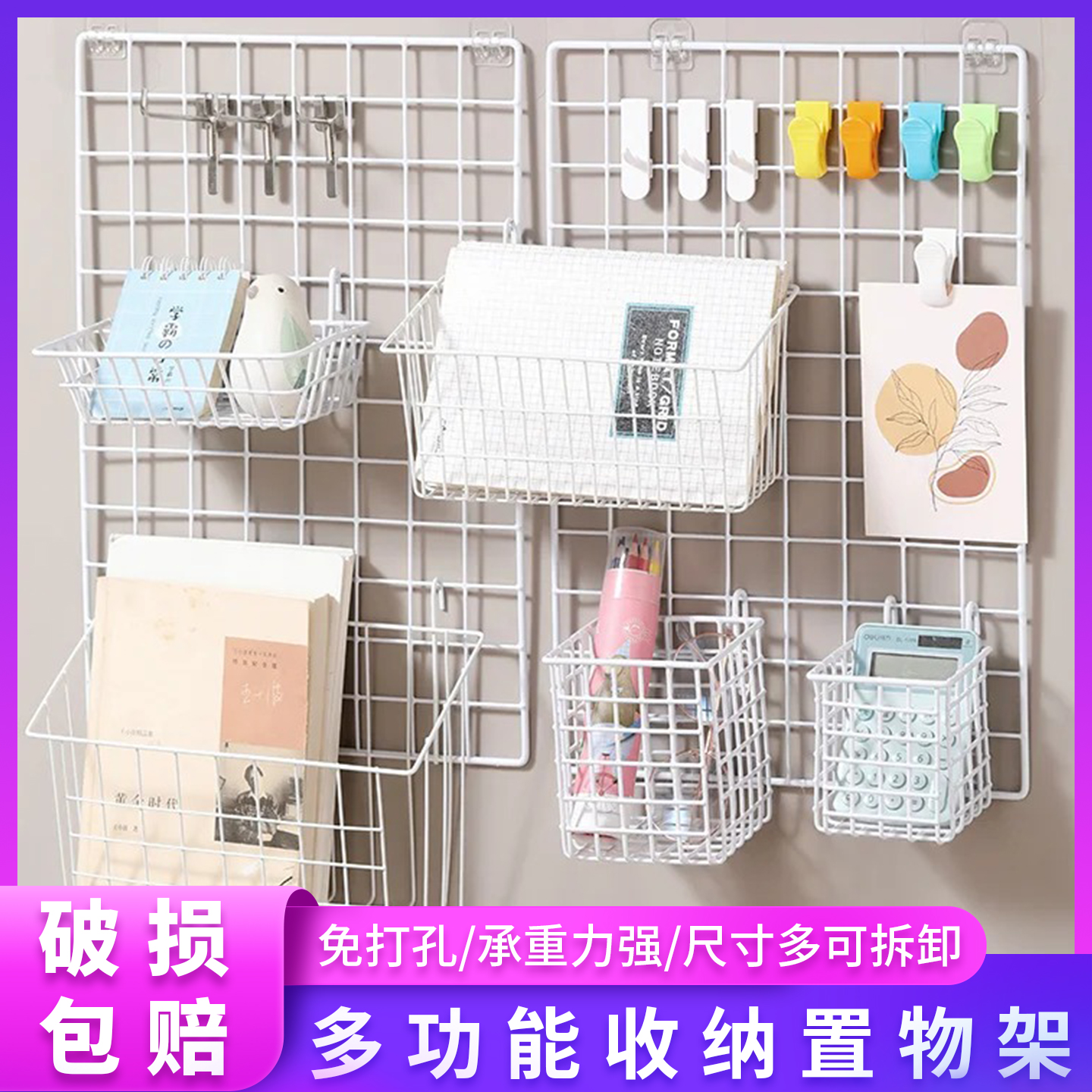 飾掛件展示架 網(wǎng)格片墻上置物架免打孔鐵藝網(wǎng)格照片墻掛架裝由