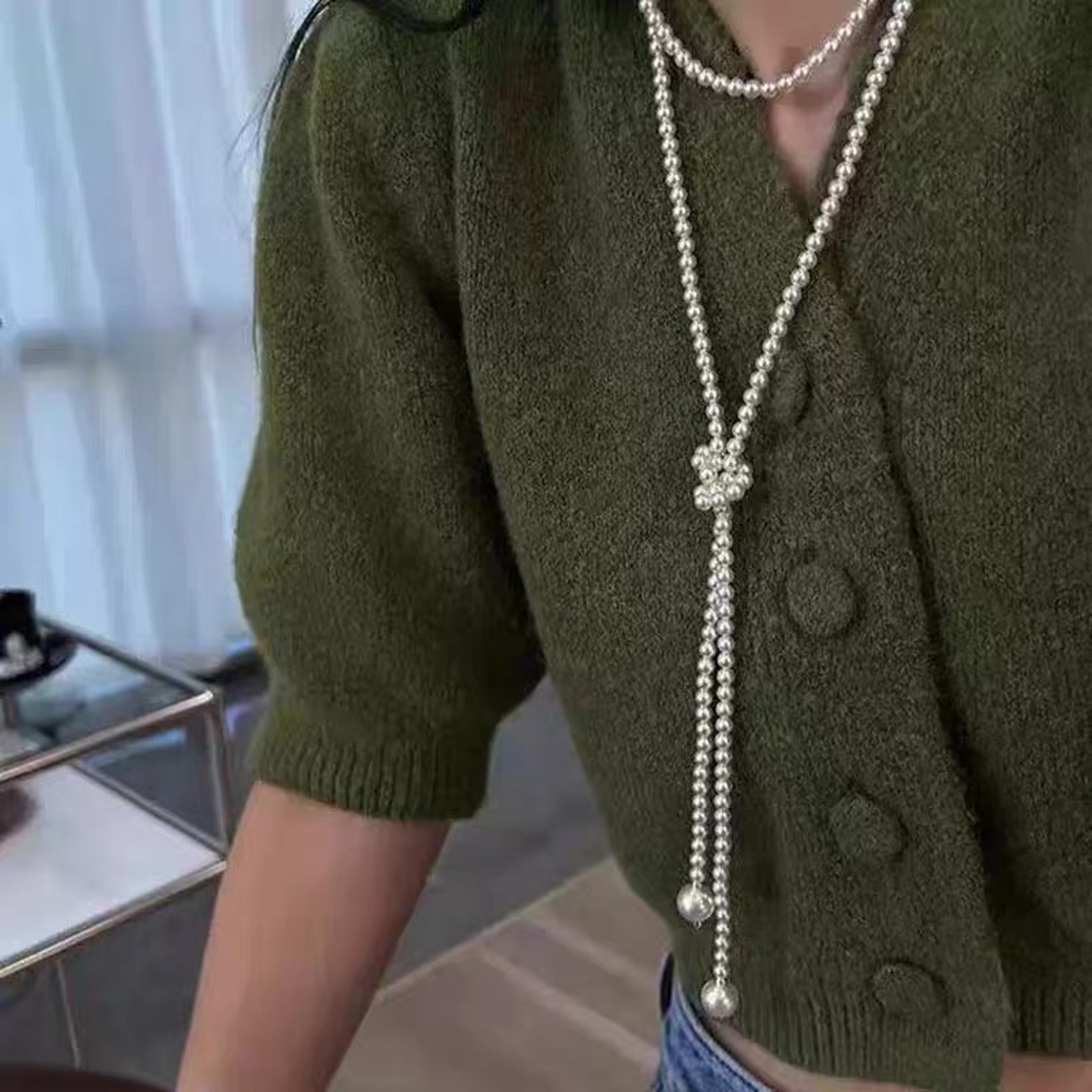 Céleste 串珠項鏈女氣質百搭毛衣鏈 小香老錢風小眾設計感長款由