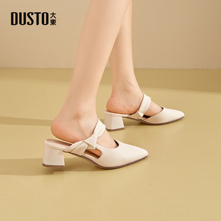 夏季 2025新款 女款 小涼拖包頭粗跟高跟拖鞋 穆勒鞋 法式 大東尖頭涼鞋由