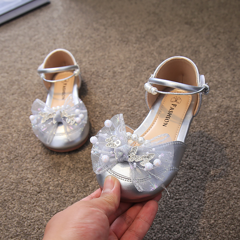 女寶寶半包公主鞋 女童涼鞋 包頭網(wǎng)紗蝴蝶結(jié)珍珠2025夏款 兒童鞋 單鞋由