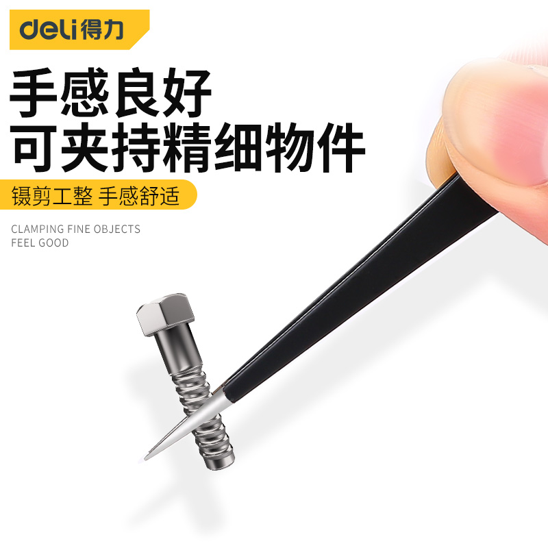 得力工具不銹鋼鑷子彎頭細尖頭防靜電小鑷子夾小夾子維修工具套裝由