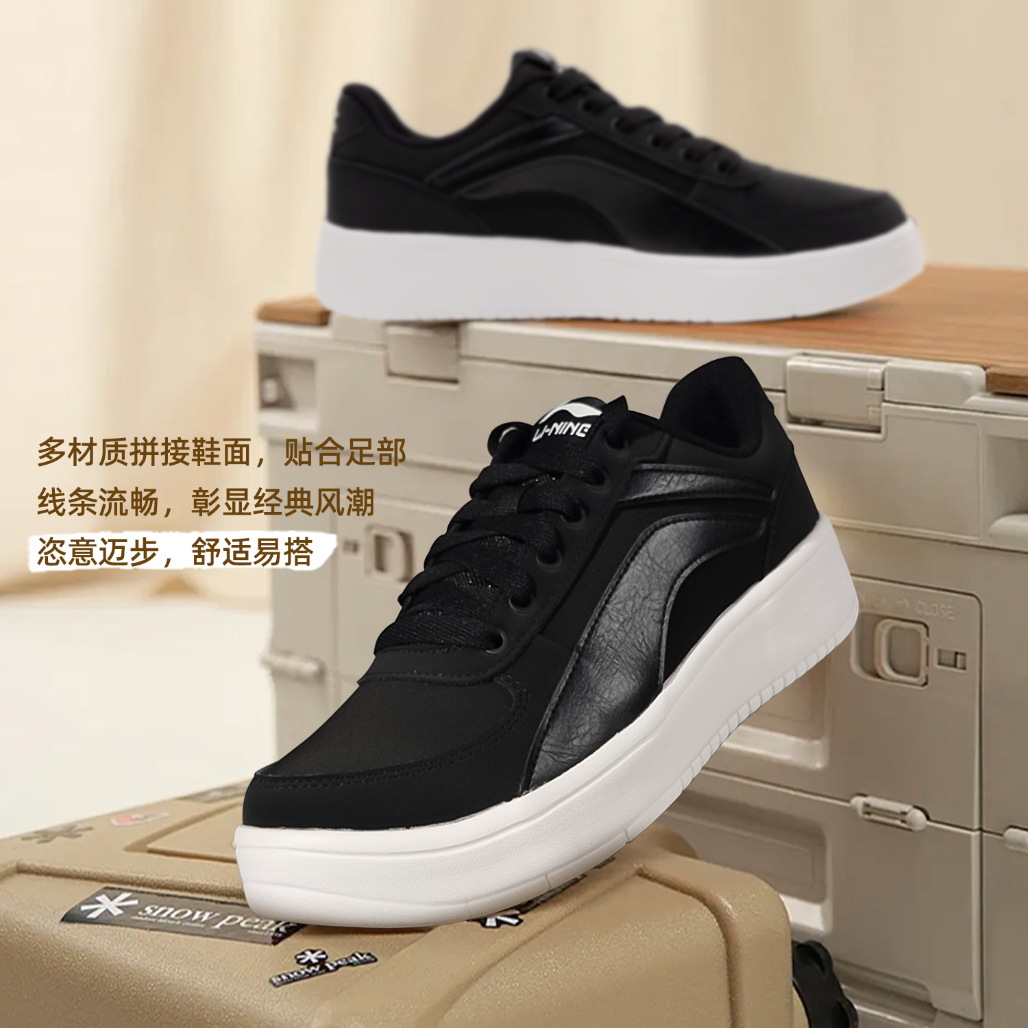 百搭輕便軟底顯高運(yùn)動(dòng)鞋 李寧板鞋 低幫黑色秋季 2025新款 男款 休閑鞋由