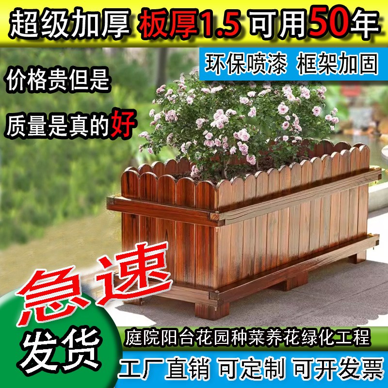 速發(fā)QX防腐木花箱庭院戶外種菜花槽花箱臺(tái)碳化種植大號(hào)實(shí)木防腐木由