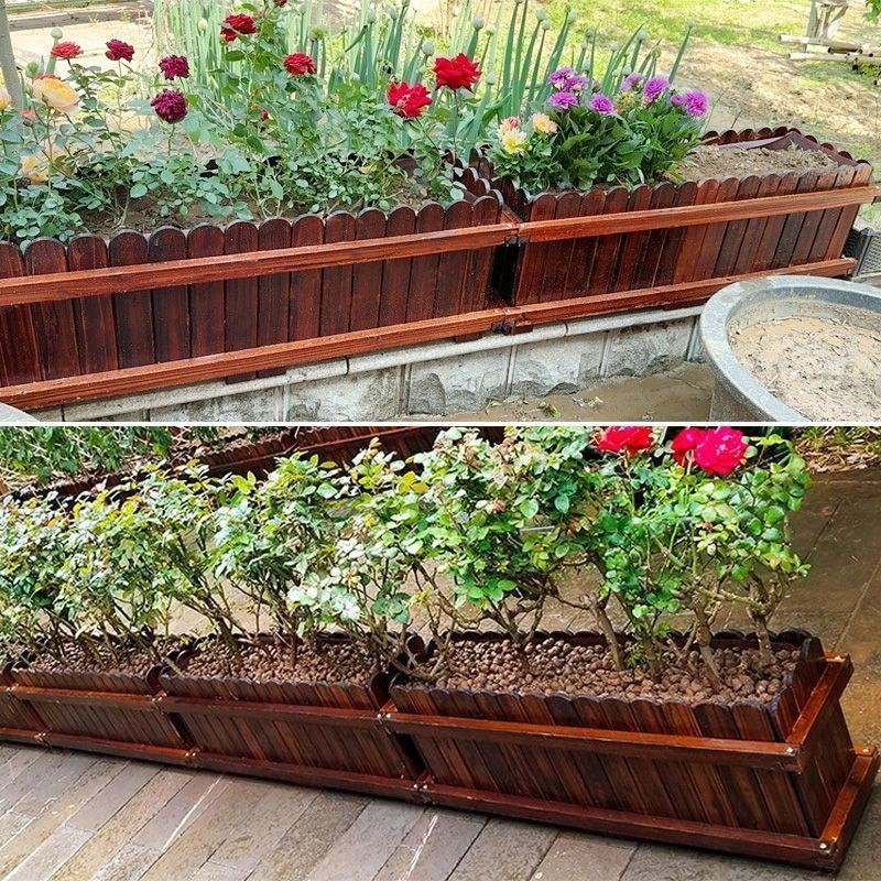 防腐木花箱種植箱戶外庭院種菜專用木花盆花壇陽(yáng)臺(tái)室外圍欄長(zhǎng)方形