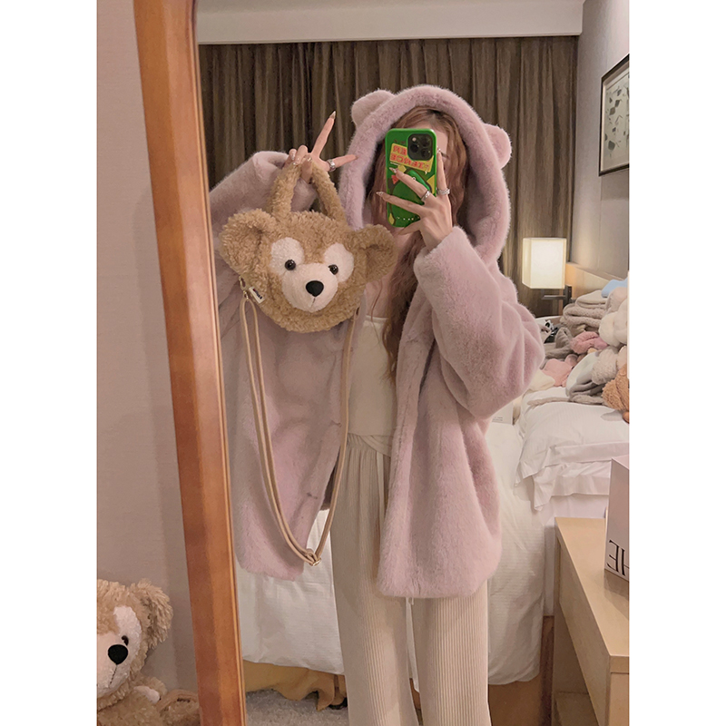 Yukiss 米白色環保皮草連帽毛毛外套女冬小個子 福利清倉5折由