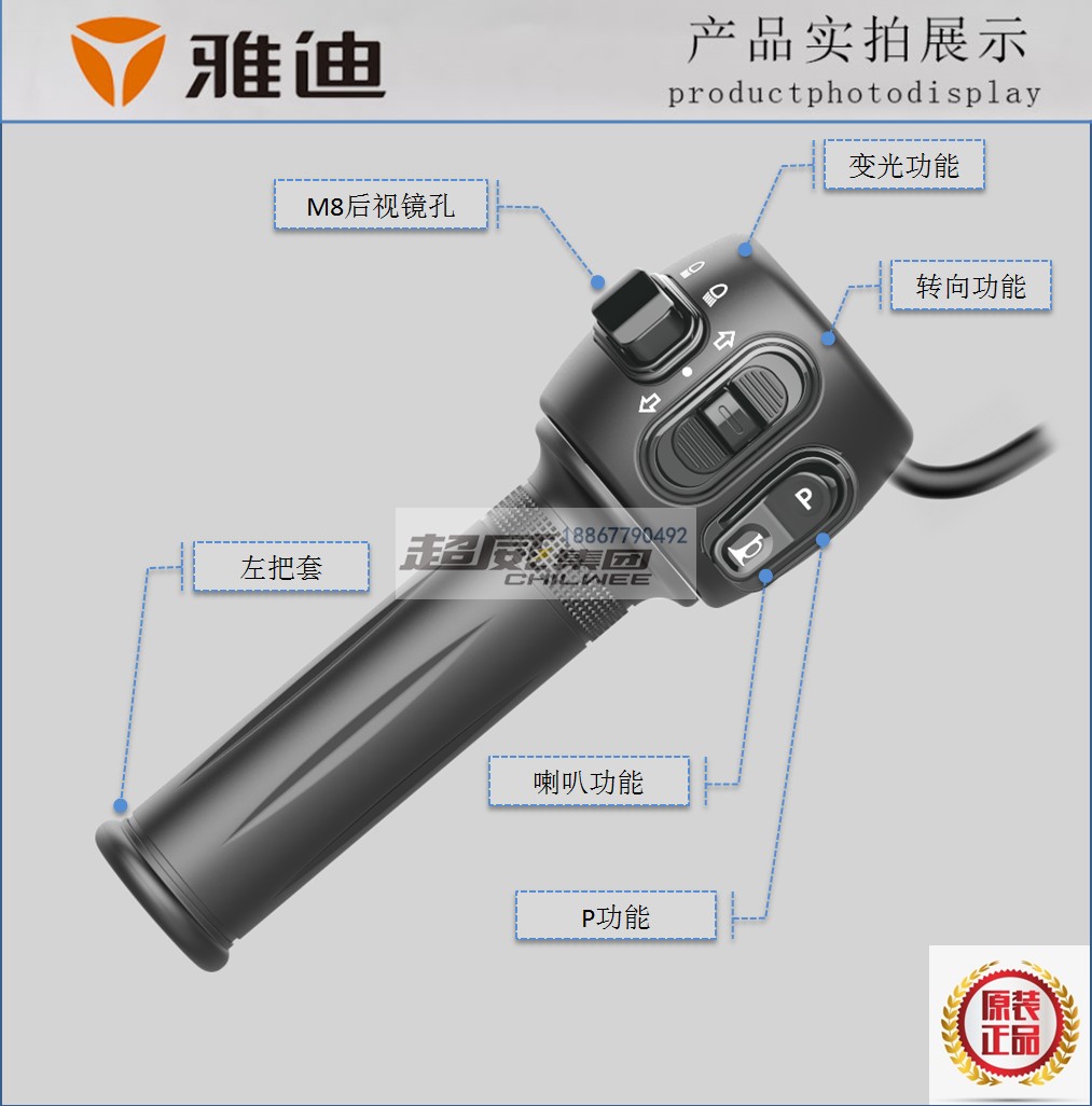 適用于雅迪T5冠能電動(dòng)車?yán)乳_關(guān)左開關(guān)剎把剎車手柄左喇叭按鈕