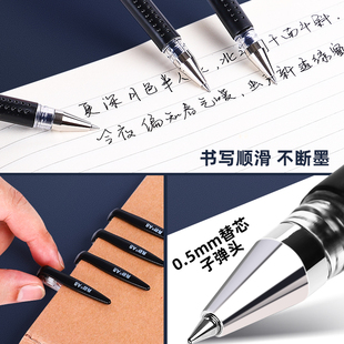 得力中性筆商務學生專用考試筆小學生圓珠筆水筆簽字筆水性筆筆芯0.5mm黑筆黑色紅筆記號筆辦公室按動子彈頭