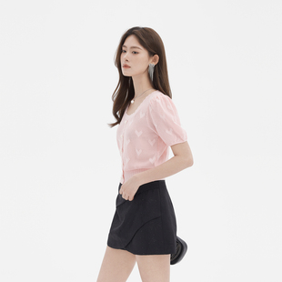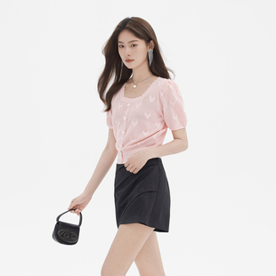 依妙EMU方領泡泡袖 方領泡泡短袖 針織短衫 毛織上衣2025夏季由