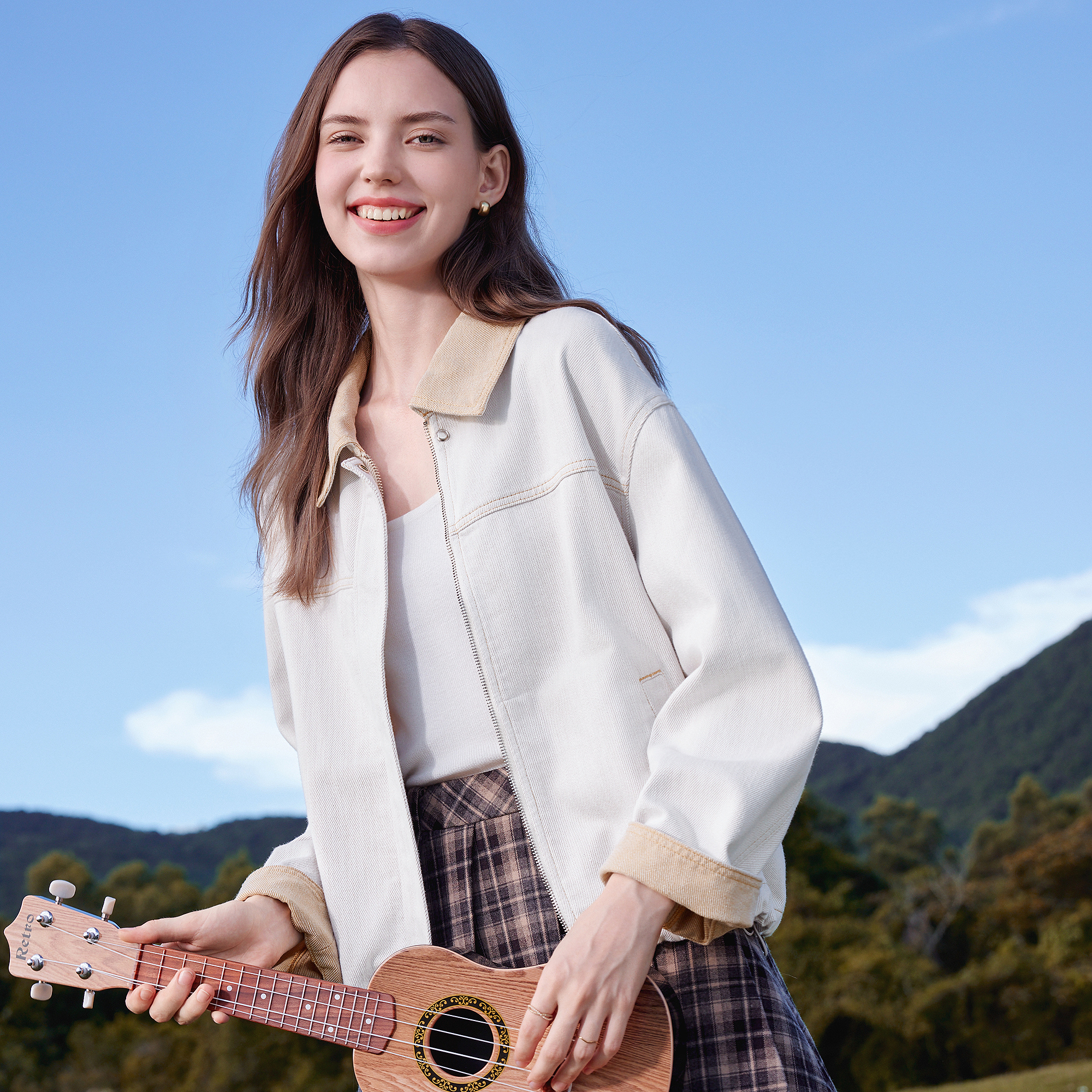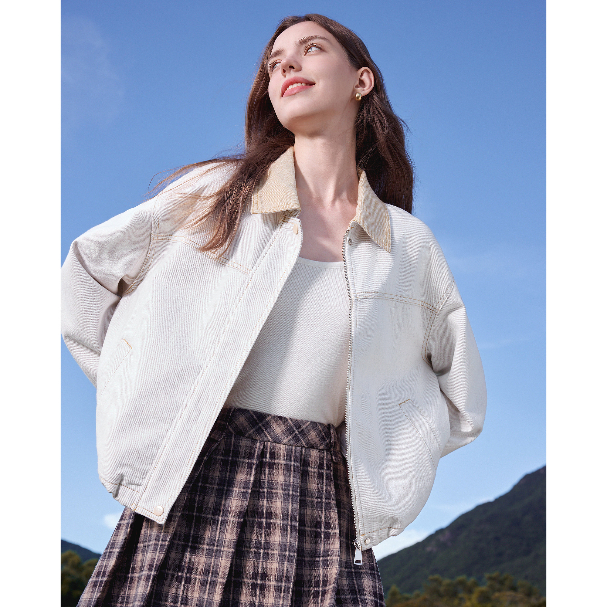 短款 撞色百搭外套 新款 betu百圖米白色寬松牛仔夾克女2025年秋季由