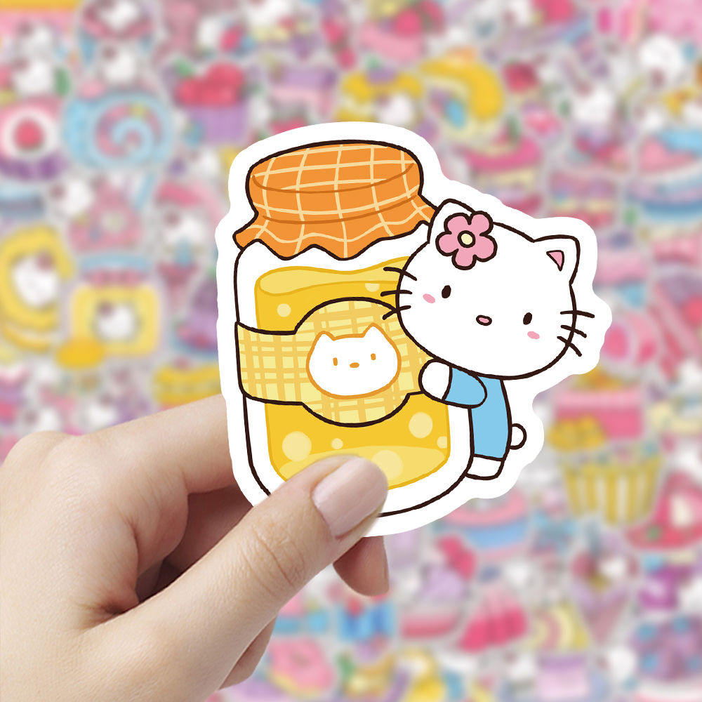 飾毆手賬防水diy貼畫 100張kit小貓貼紙卡通可愛創意食物三麗diy裝由