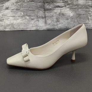迪芙斯正品 處理春秋方頭時尚 蝴蝶結淺口真皮細跟女單鞋 潮 撤柜斷碼由