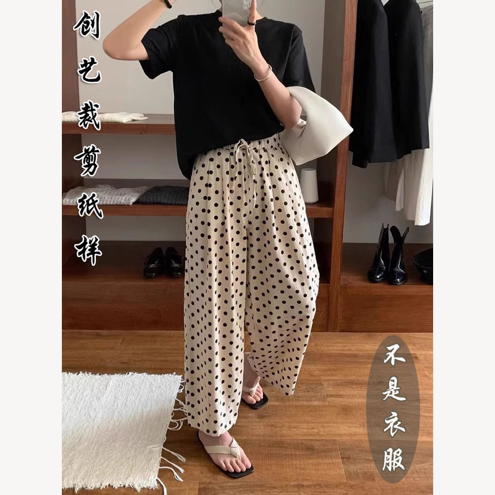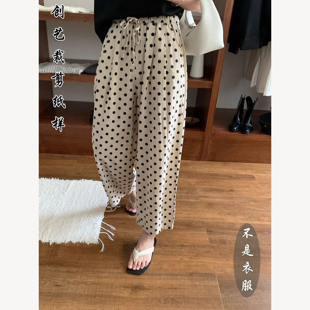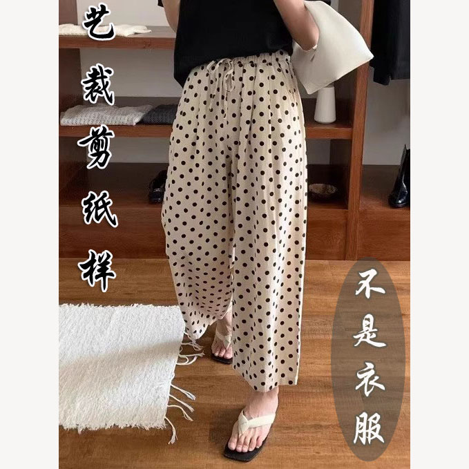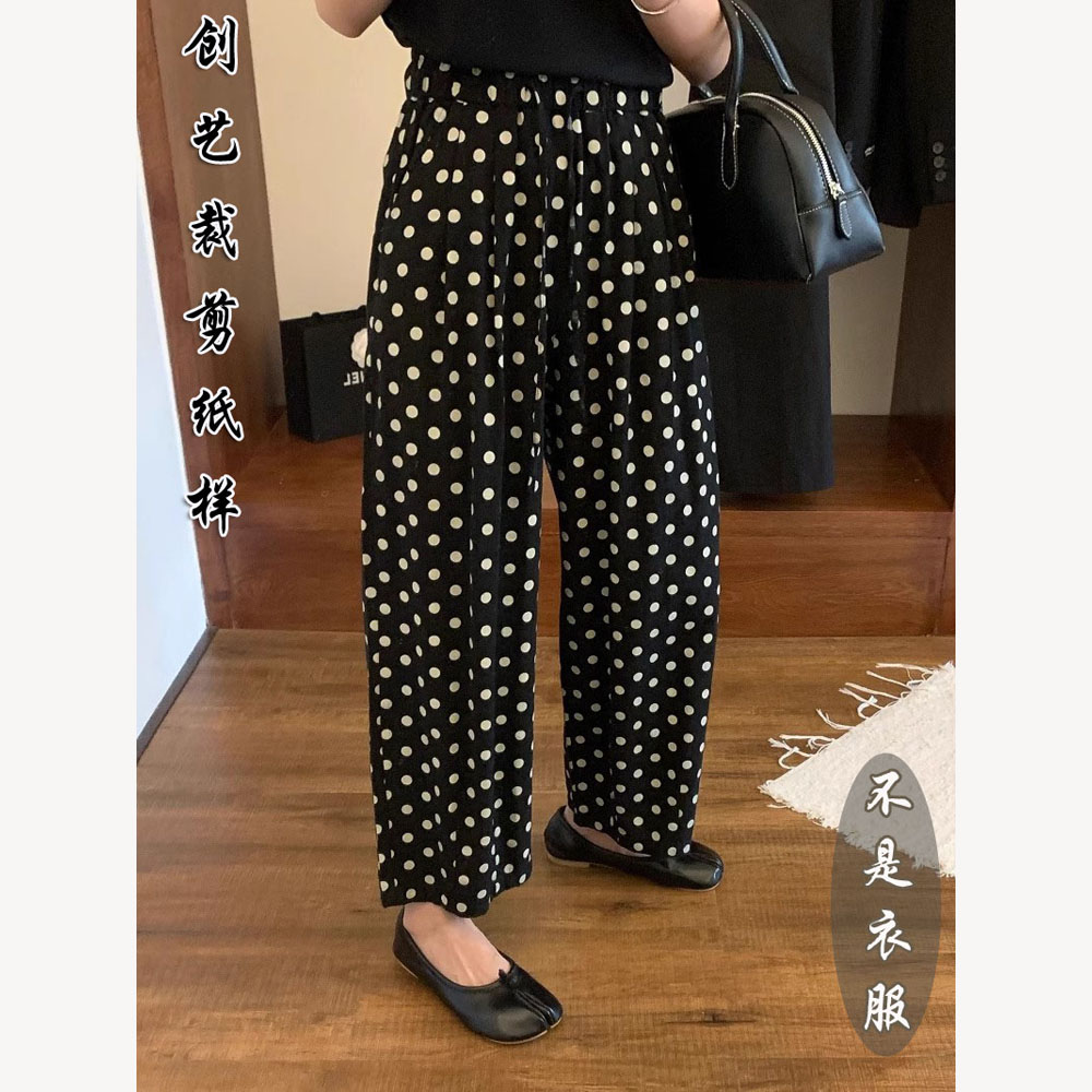 女2025夏新款 打版 裁剪 F39棉麻波點闊腿褲 紙樣 高腰休閑直筒九分褲由