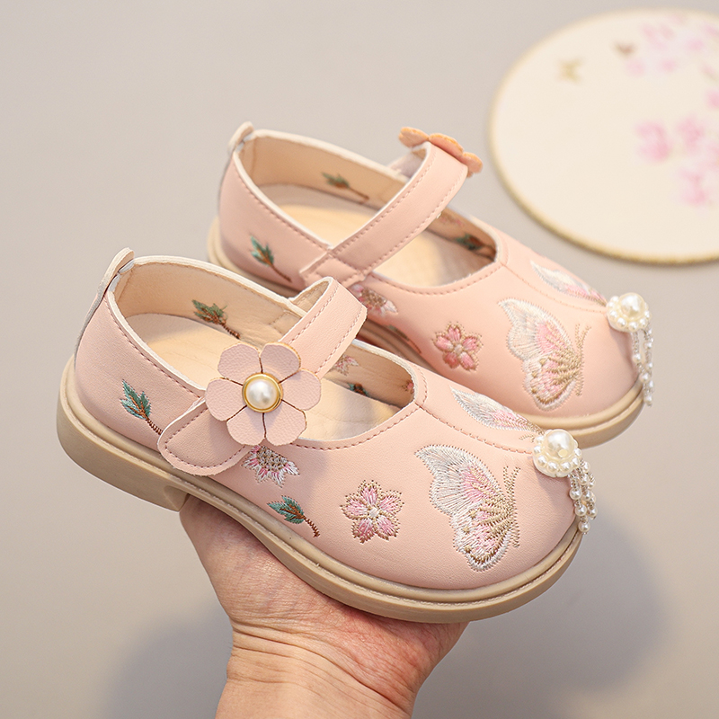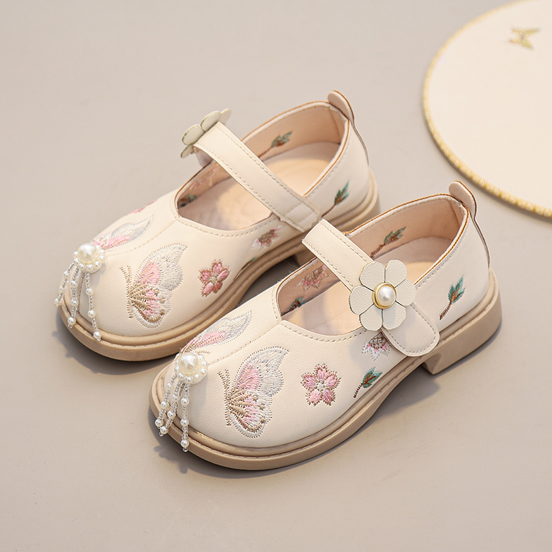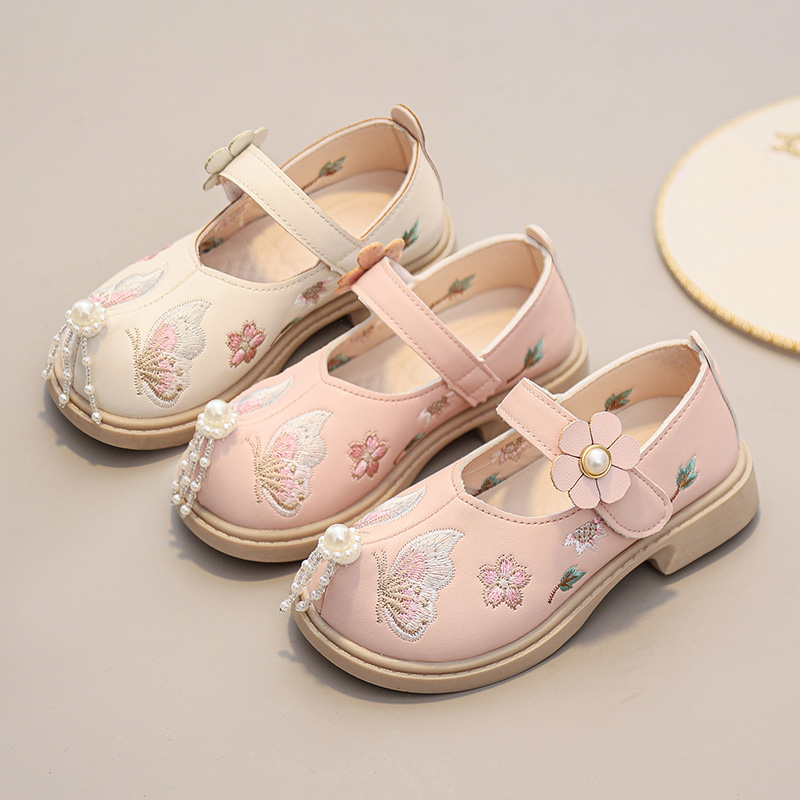 國風小皮鞋 真皮女童漢服鞋 子兒童馬面裙鞋 春秋新款 古風繡花公主鞋