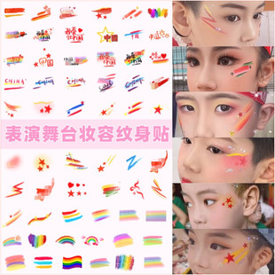 旦表演 紋身貼臉部彩妝亮片妝容國慶五一六一兒童節(jié)日學(xué)生臉貼紙元由