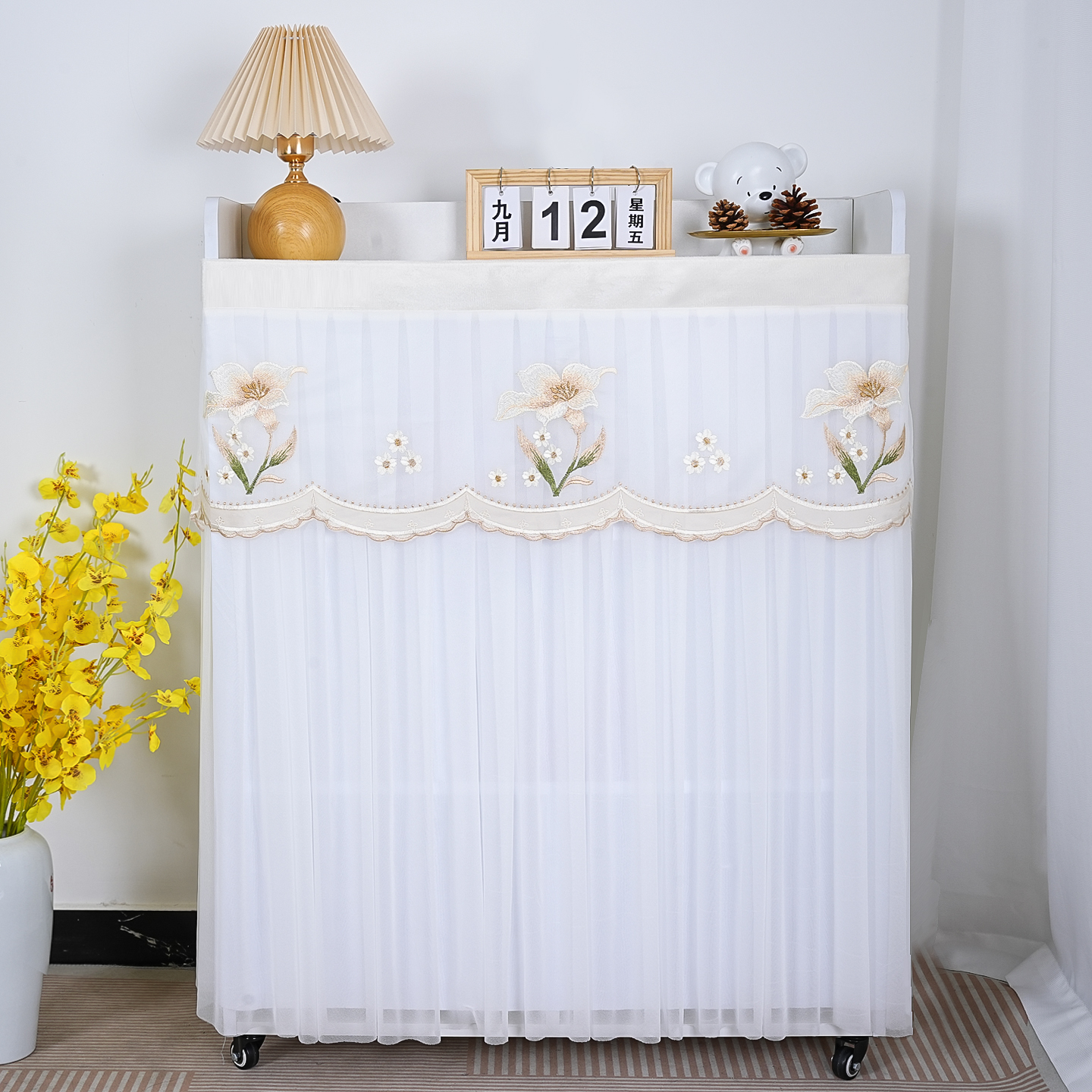 柜類遮擋簾可定制法式 洗衣機遮擋簾溫柔紗繡奶白色書柜鞋 2025新品