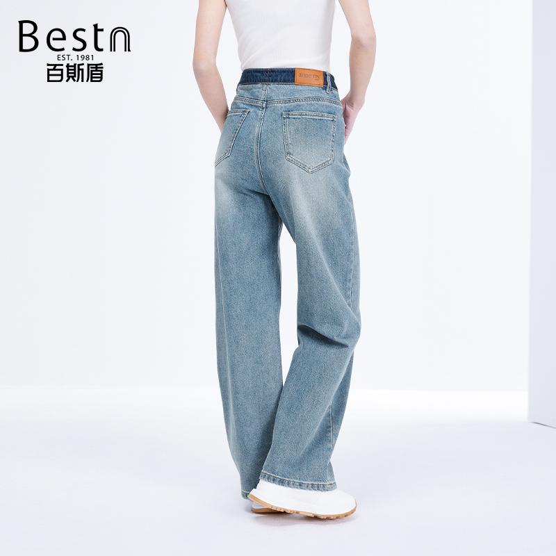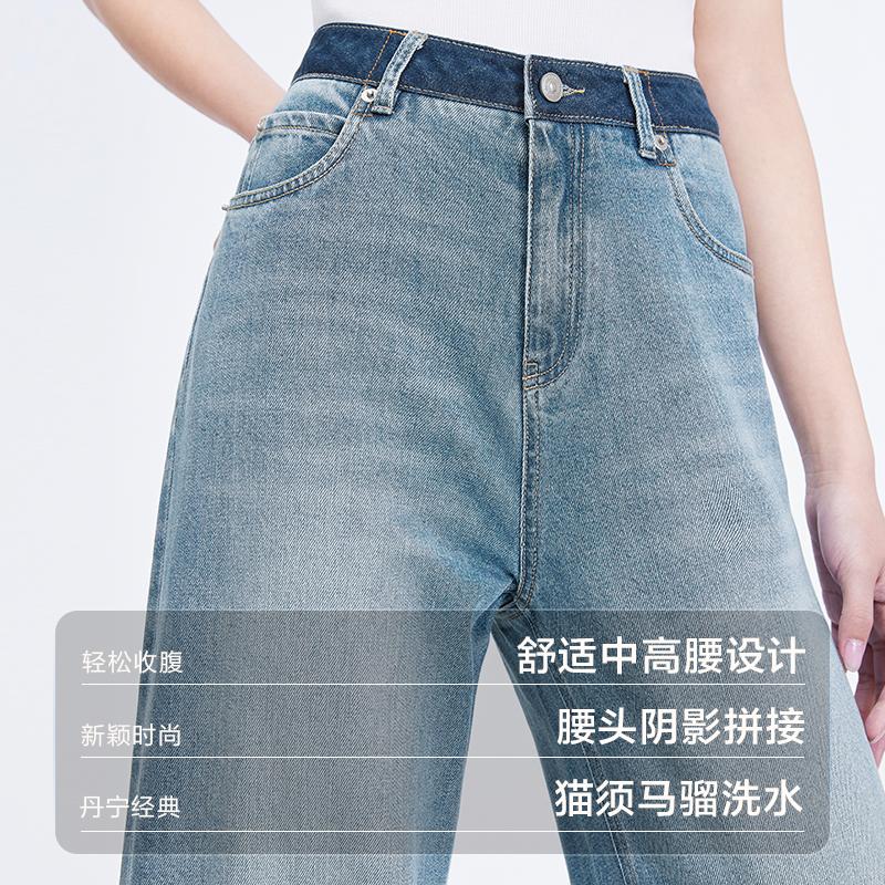 新款 百斯盾女裝 牛仔褲 2025年春季 00062 摩登復古撞色寬松闊腿長褲由