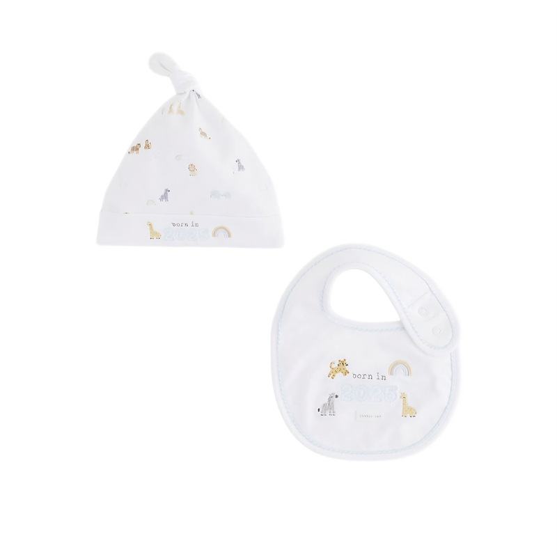 英國進口Next新生兒純棉胎帽寶寶圍嘴嬰幼兒2025周年限定2件套裝由