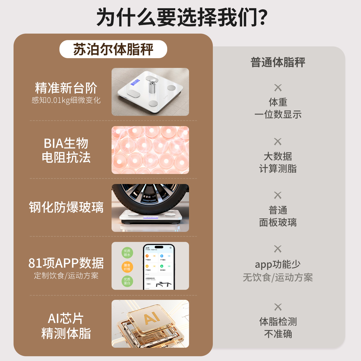 蘇泊爾家用體重秤精準體脂秤減肥專用人體秤智能電子秤減脂健康稱