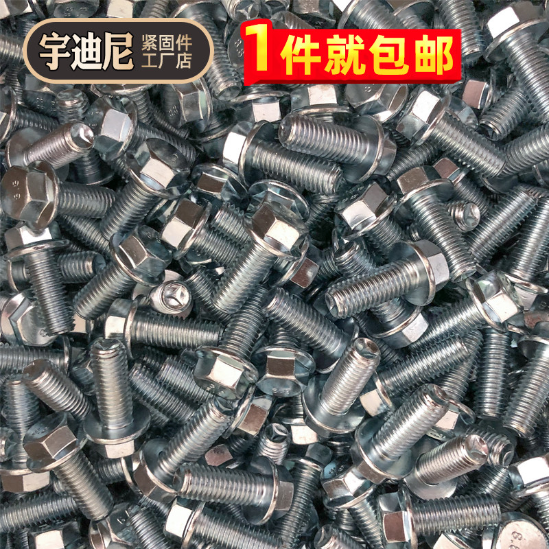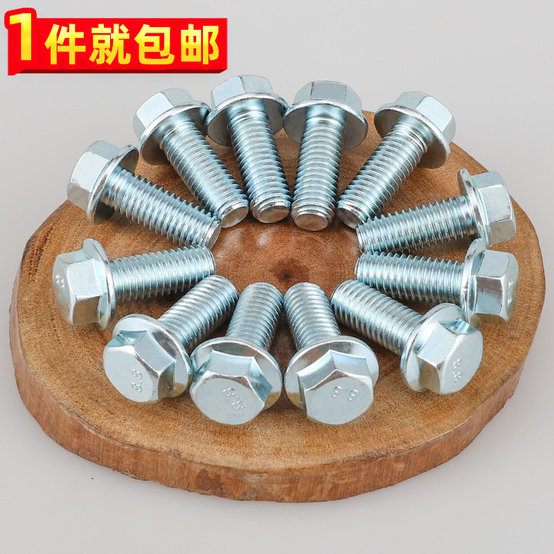 鍍鋅六角法蘭螺栓帶墊螺絲GB5789大頭螺釘汽車摩托5M6M8號10厘12C由