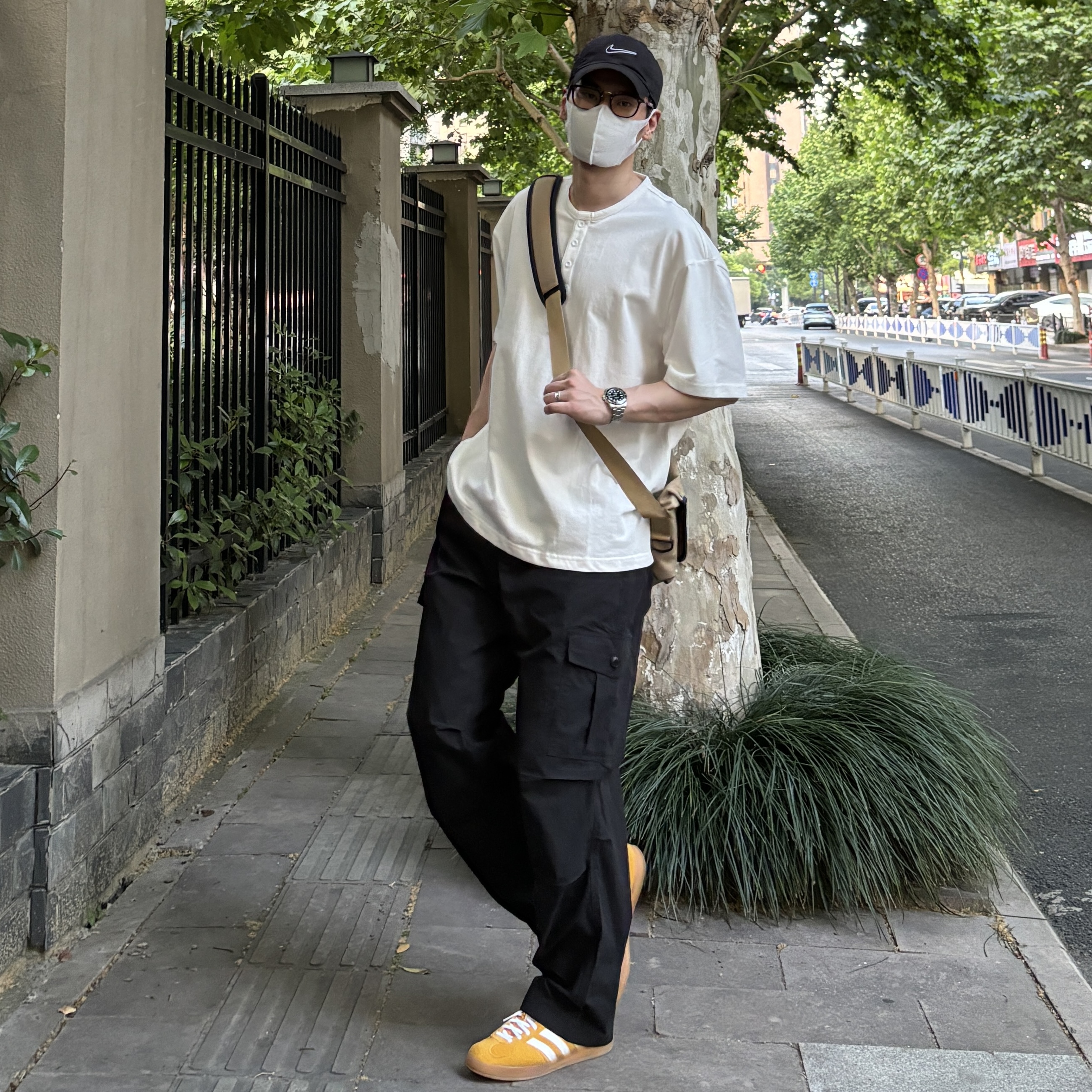 悟空有貨潮牌美式 褲 男復古寬松高街闊腿休閑長褲 褶皺水洗直筒工裝