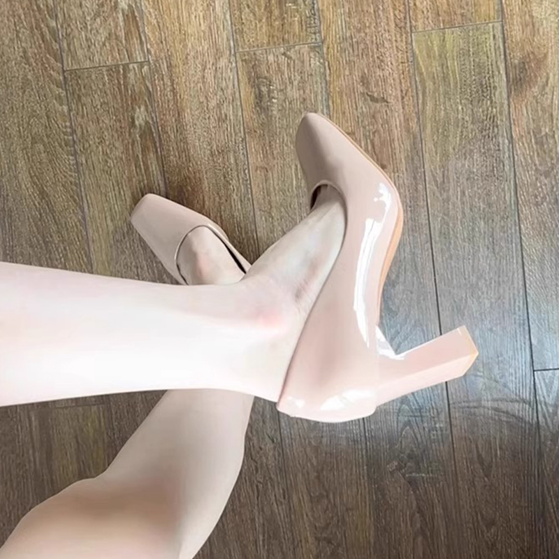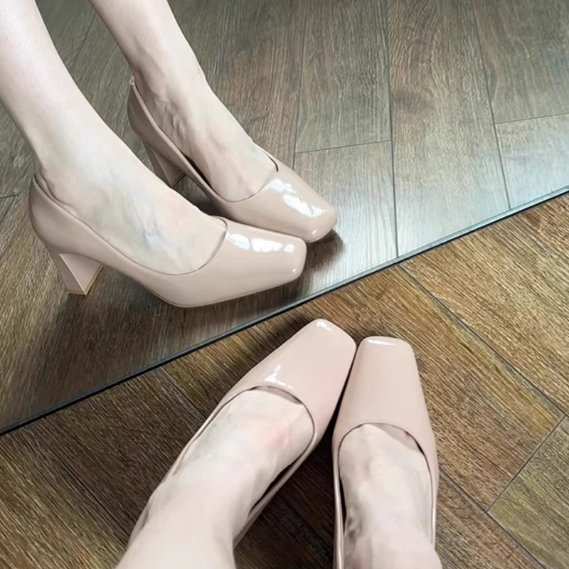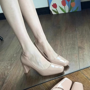 粗跟 女秋淑女風裸粉色新款 軟皮不磨腳通勤面試單鞋 方頭高跟鞋由