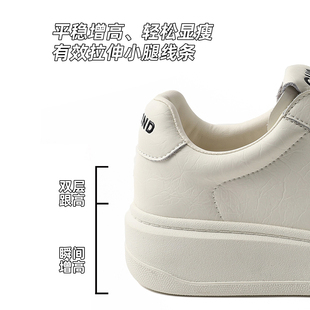 秋季 厚底增高小白鞋 板鞋 子 皮面休閑鞋 百搭運動鞋 新款 鴻星爾克女鞋