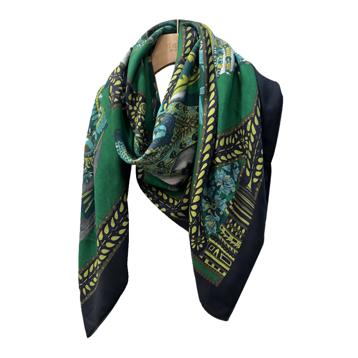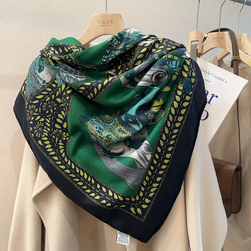 馬元 素真絲羊毛大方巾披肩圍脖 輕奢絲毛圍巾女冬季 復古墨綠色系由