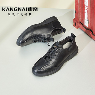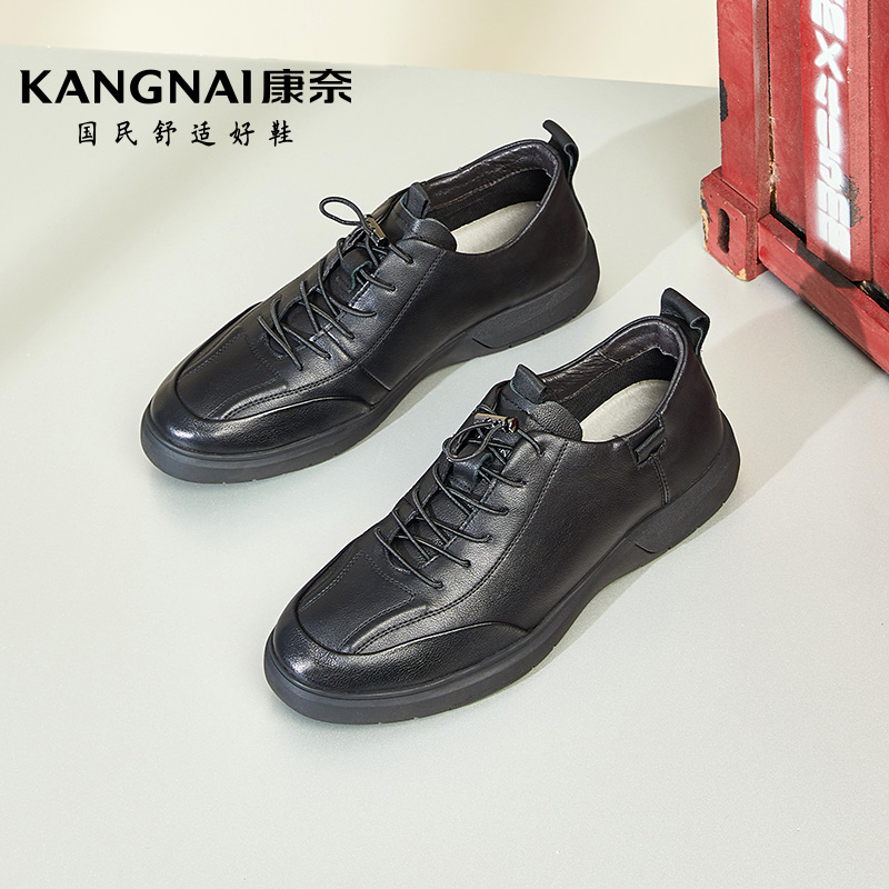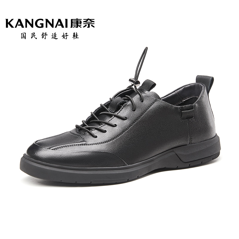 透氣真皮松緊帶休閑皮鞋 新款 春季 子 耐磨戶外鞋 通勤鞋 男士 康奈男鞋由