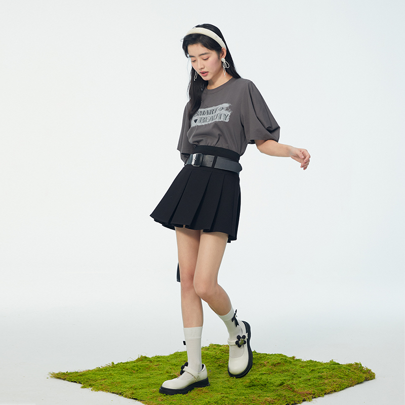 新款 腰帶小個子顯高a字短裙 高腰百褶半身裙女夏季 PIT復古法式由