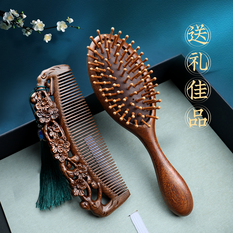 絲域養發原木順發梳頭皮按摩敲打梳子氣墊木頭梳子鋼齒梳送禮女士