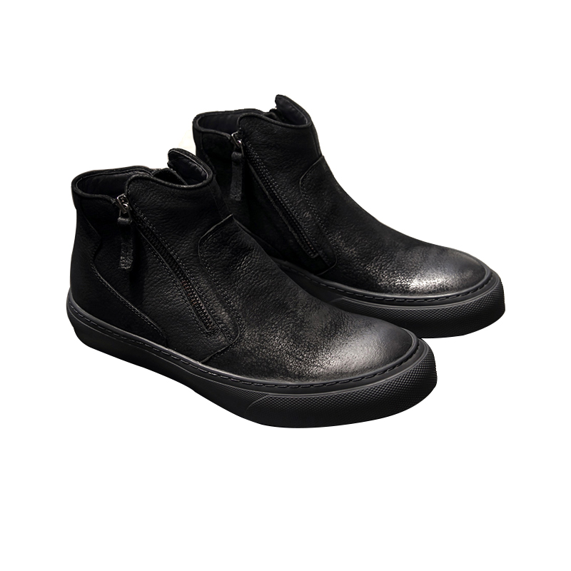一腳蹬新款 真皮復(fù)古高幫男鞋 韓版 暗黑套腳短筒拉鏈日系板鞋 休閑鞋由