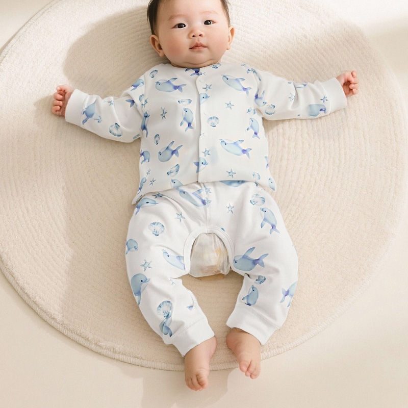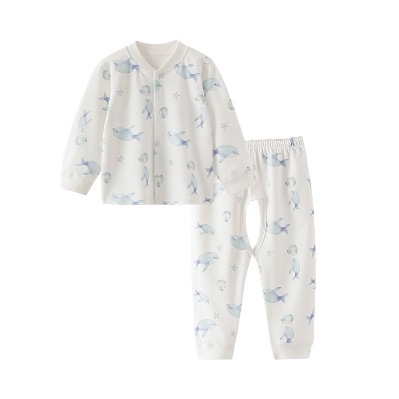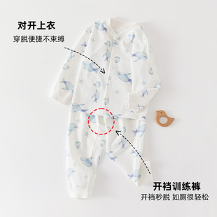 哇哇寶寶套裝 a類純棉薄款 長袖 睡衣開檔家居嬰兒衣服 分體秋衣秋褲由