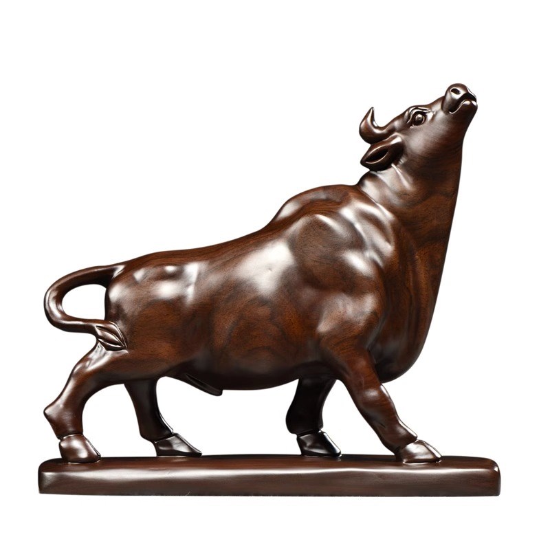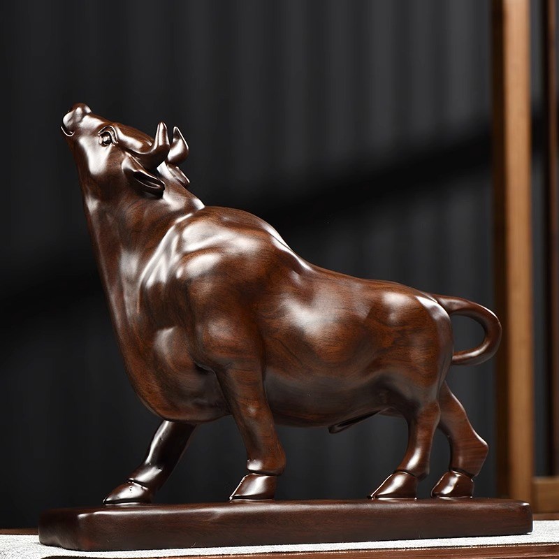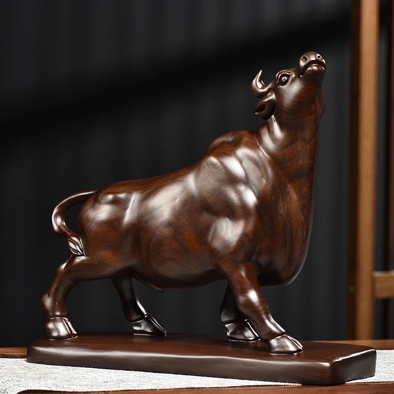 牛市木雕擺件實(shí)木雕刻裝 飾辦公開業(yè)牛氣沖天 飾品生肖家居客廳裝由