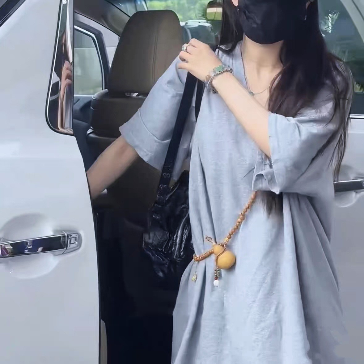 新中式 女古風(fēng)葫蘆毛衣鏈潮 國風(fēng)木質(zhì)串珠圓珠佛珠斜挎背背項鏈長款由