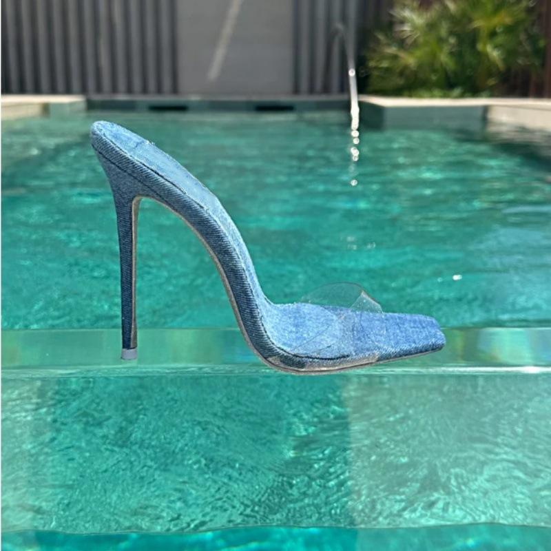 高跟鞋 透明水晶鞋 鞋 子 時尚 粗跟外穿拖鞋 新款 女2025年夏季 涼鞋 時裝