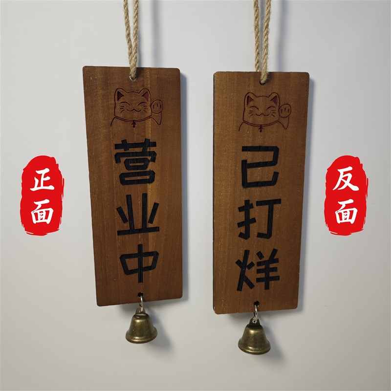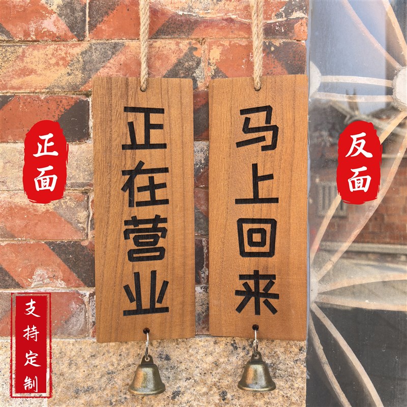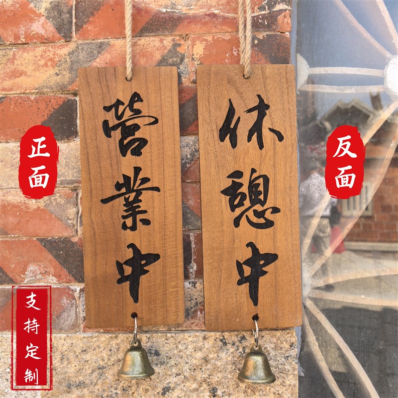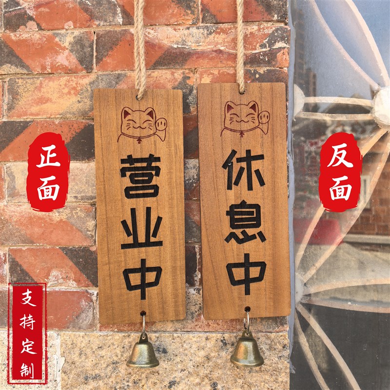 簡約店鋪提示牌創(chuàng)意個性 營業(yè)時間 j飾門牌掛牌日式 定制實木雕刻裝由