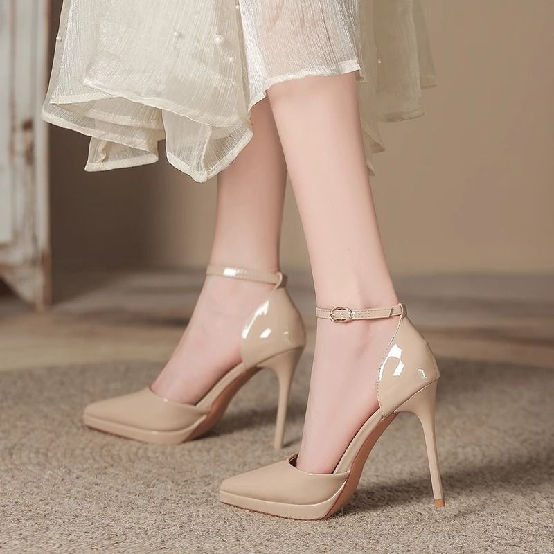 漆皮防水臺性不累腳氣質尖頭鞋 超高跟鞋 女細跟2025春季 新款 大碼由