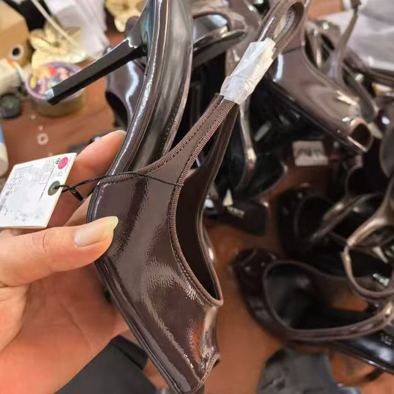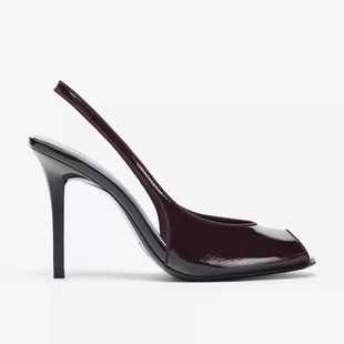黑色漆皮效果圓頭細(xì)高跟涼鞋 性感魚嘴中空歐美單鞋 西班牙2025秋季由