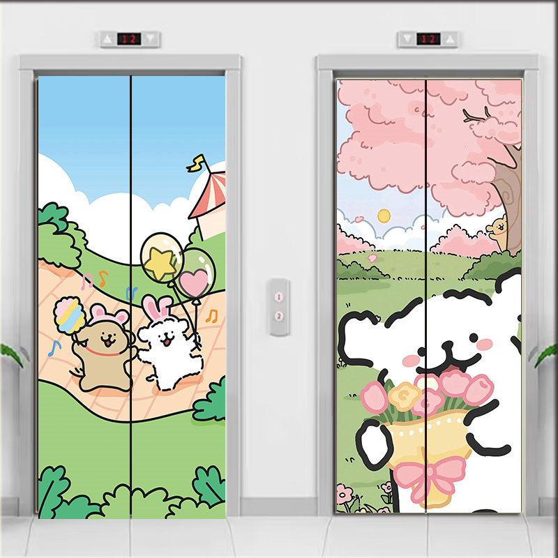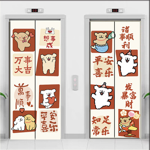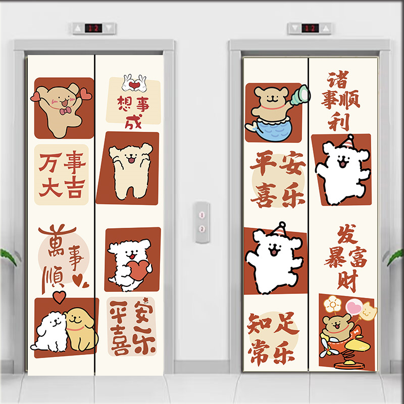 飾貼畫一梯一戶自粘整張壁紙 卡通狗電影院商場入戶門電梯門貼紙裝由
