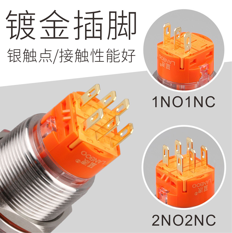 常開(kāi)常閉防水帶燈IP65 藍(lán)波19mm金屬急停按鈕M5紅色蘑菇頭保持式由