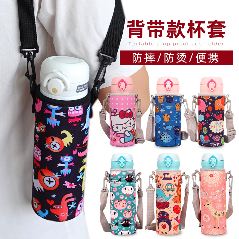 保溫杯杯套 500ml 通用兒童卡通長(zhǎng)背帶可斜挎手提水杯袋保護(hù)套350