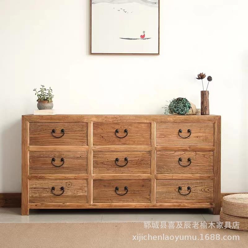 柜榆木斗柜實木茶水柜儲物柜 老榆木餐邊柜全實木客廳儲物柜家用鞋由