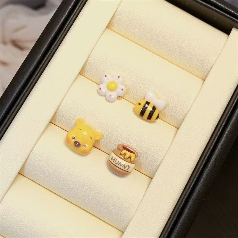 新款 甜美少女卡通設計小巧學生耳環耳飾 可愛黃油小熊樹脂耳釘套裝由