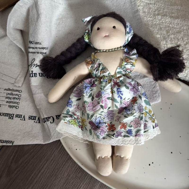 韓風可愛手工布藝碎花裙娃娃長發玩偶公仔小女孩布偶 新款由