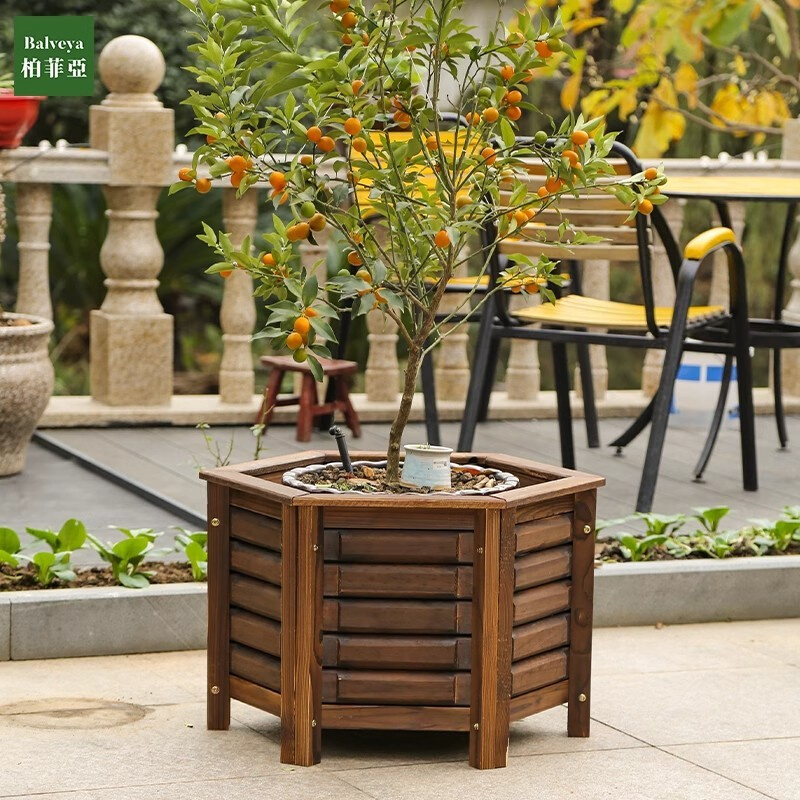 QX防腐木花箱戶外庭院果樹種植箱別墅門口鐵樹大花盆特大號種樹箱由