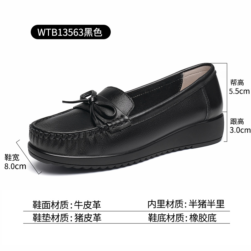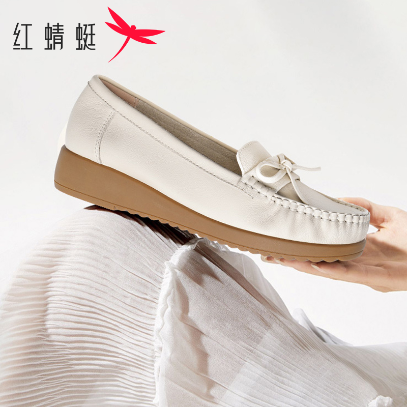 女低跟淺口套腳皮鞋 紅蜻蜓女鞋 女 軟底單鞋 真皮舒適媽媽鞋 秋季 新款由